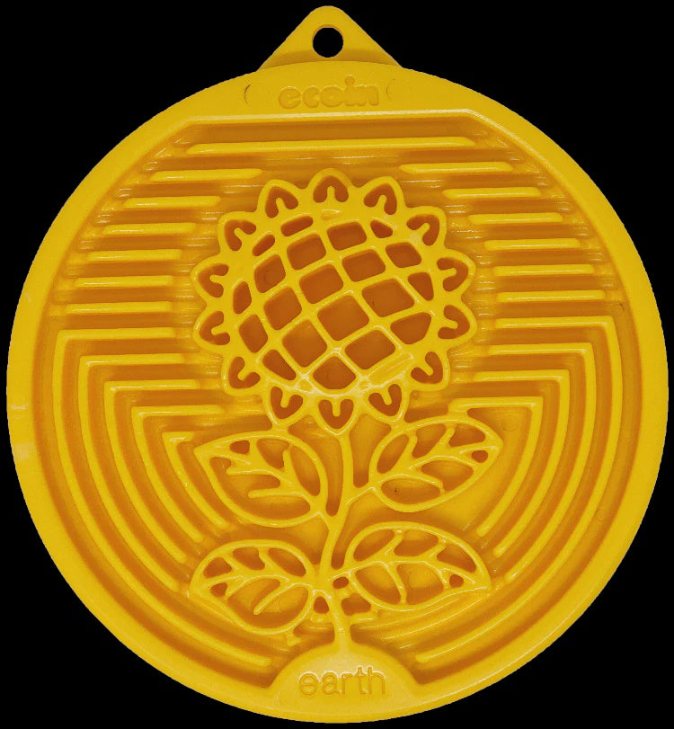 ENRICHMENT: This ultra-durable nylon ecoin with asunflower motif is designed for enrichment snacks and built to withstand those excitable dogs that sometimes chew up their lick mats. This toy helps keep your dog entertained and solves problem chewing behaviors. Smear soft foods into the surface and let your dog lick away!